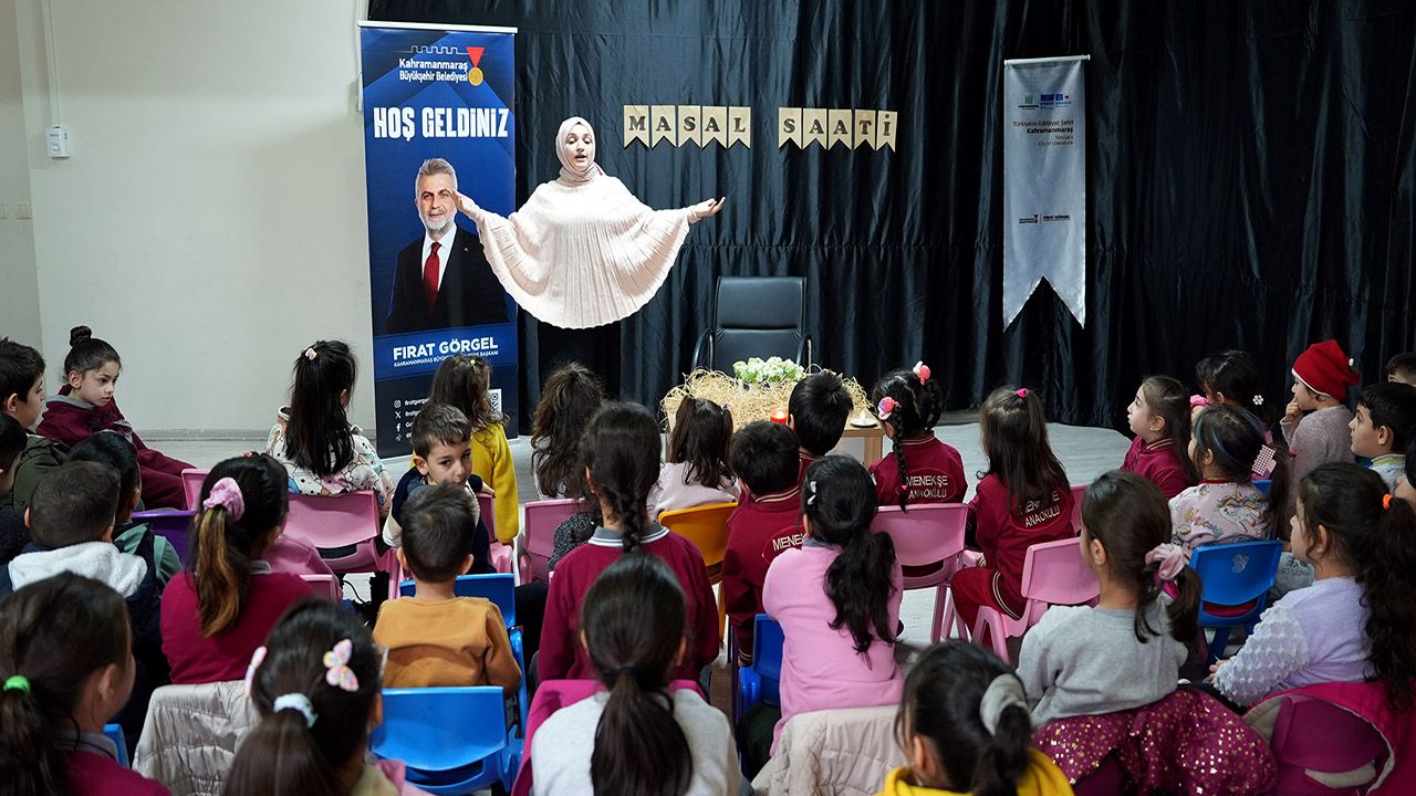 UNESCO tarafından Türkiye’nin ilk ve tek ‘Edebiyat Şehri’ olarak ilan edilen Kahramanmaraş, bu özel kimliğini pekiştiren kültürel ve sanatsal etkinliklerini toplumun her kesimine ulaştırmaya devam ediyor. Kahramanmaraş Büyükşehir Belediyesi, Mevlâna İdris Kültür Sanat Sezonu kapsamında özellikle çocuklara yönelik programlara ayrı bir önem vererek, miniklerin edebiyat ve sanatla erken yaşta tanışmasına imkân sağlıyor. Bu kapsamda Onikişubat Menekşe Anaokulu’nda düzenlenen masal dinletisinde, çocuk edebiyatının sevilen isimlerinden Sevde Gözükara, küçük okurlarla bir araya geldi. Renkli masalları çocuklara aktaran Gözükara, anlatımlarına oyunlar ve hayal kurma egzersizleri ekleyerek çocukların hem eğlenmesini hem de düşünmesini sağladı. Çocuklar masalların içine dahil edilerek kendi fikirlerini ortaya koydu.