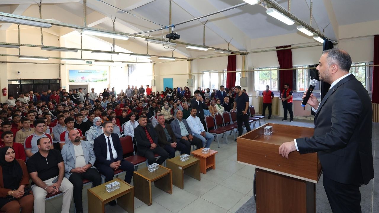 “Öncelikle hepinizi sevgiyle, saygıyla selamlıyorum. Bugün sizlerle bir arada olmaktan büyük bir memnuniyet duyuyorum. ‘Gönülleri Giydiriyoruz’ projemiz kapsamında, siz değerli öğrencilerimize çam sakızı çoban armağanı hediyelerimizi takdim ediyoruz. Bizler biliyoruz ki bu ülke, sizin kanatlarınızla yükselecek. Göreve geldiğimiz günden bu yana gençlerimiz için hem fiziki hem de manevi anlamda birçok projeyi hayata geçirdik, bundan sonra da aynı azimle çalışmaya devam edeceğiz.”