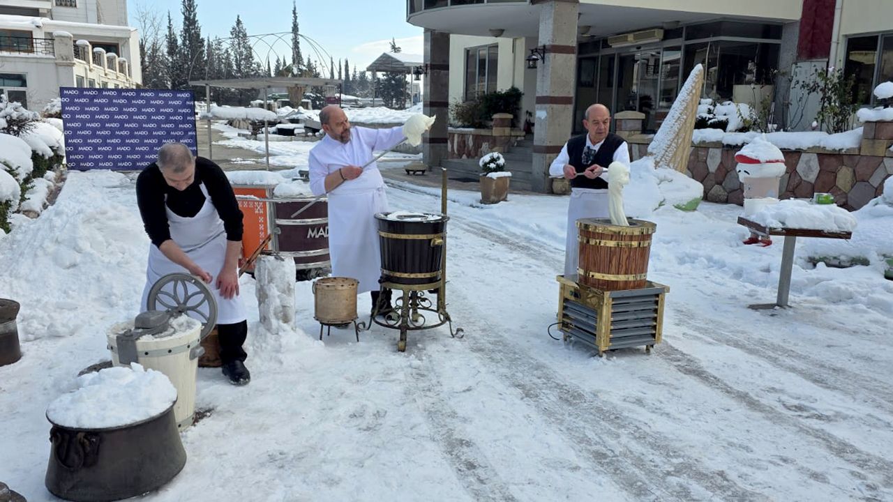 Mado Yönetim Kurulu Başkanı Mehmet Kanbur, Mado Evi’nde kar kullanılarak hazırlanan dondurmanın yapım sürecine bizzat katıldı. Nostaljik görüntülere sahne olan etkinlik, vatandaşlardan da yoğun ilgi gördü.