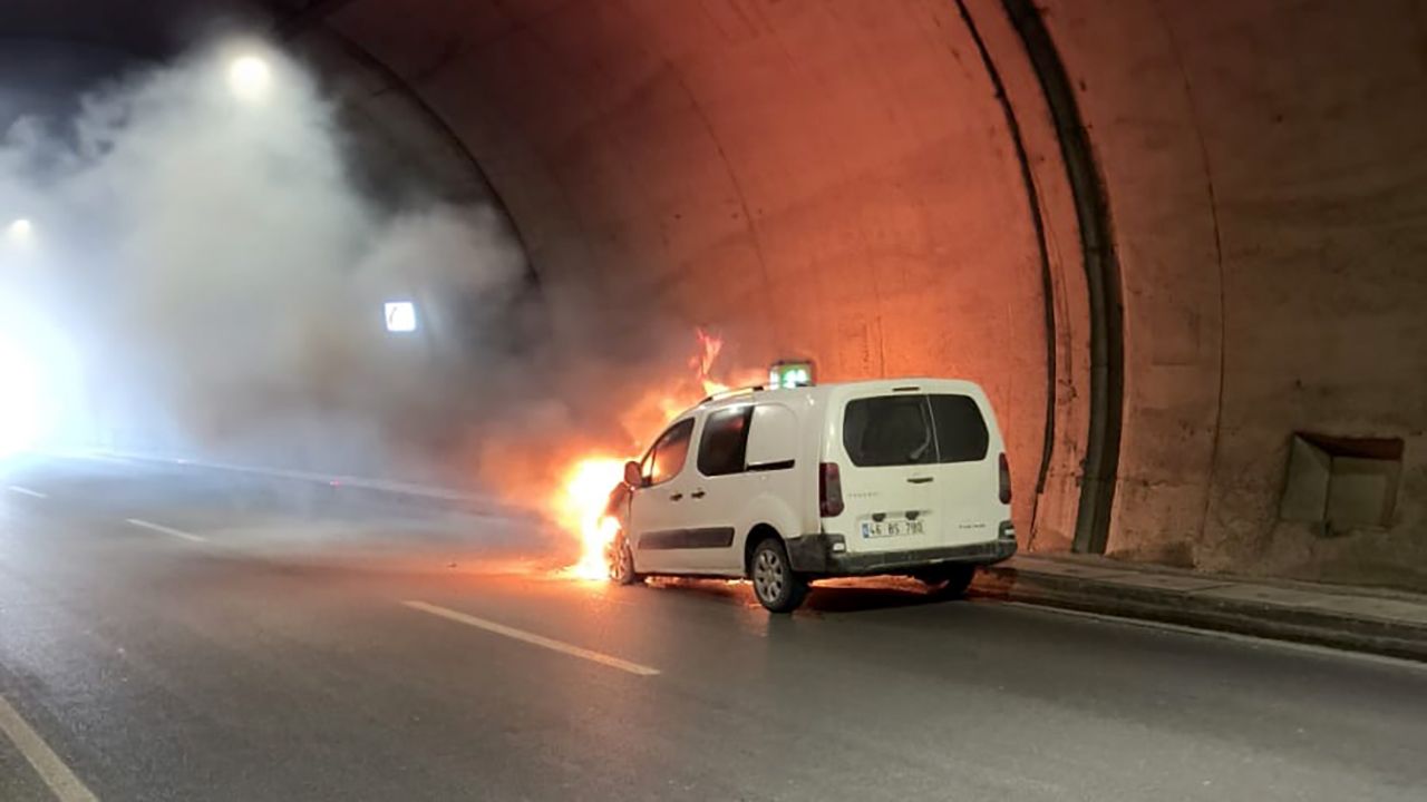 Yangın nedeniyle kısa süreliğine trafiğe kapatılan tünel, aracın güvenli şekilde alınmasının ardından yeniden ulaşıma açıldı.