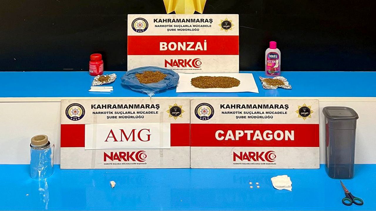 Şüphelilerin ikametlerinde ve üzerlerinde yapılan aramalarda, 1.90 gram metamfetamin, 100.41 gram sentetik kannabinoid (Bonzai), 0.80 gram sentetik kannabinoid ham maddesi (AMG), 5 adet Captagon hap, 2 adet aseton, 1 adet alüminyum folyo ele geçirildi.