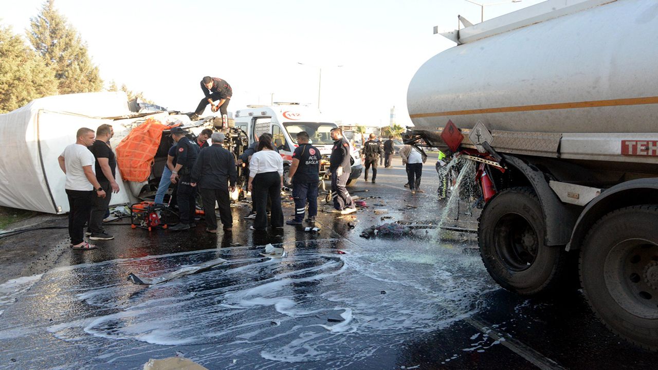 Alınan bilgilere göre, Batı Çevre Yolu üzerinde Y.G. yönetimindeki 06 BR 7156 plakalı kamyon, trafik ışıklarında bekleyen A.T.’nin kullandığı 63 ABA 968 plakalı akaryakıt tankerine arkadan çarptı. Çarpmanın etkisiyle kamyon devrilirken, tanker de hasar gördü ve içindeki yakıt yola sızdı.