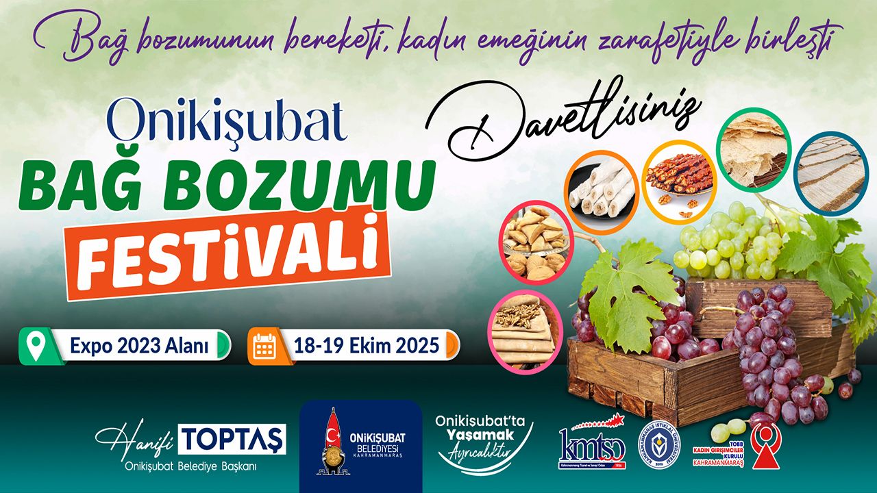 Onikişubat Belediyesi’nin ev sahipliğinde; Kahramanmaraş Ticaret ve Sanayi Odası, Kahramanmaraş İstiklal Üniversitesi ve TOBB Kadın Girişimciler Kurulu Kahramanmaraş Şubesi işbirliğiyle düzenlenecek festival, “Bağ bozumunun bereketi, kadın emeğinin zarafetiyle birleşiyor” sloganıyla gerçekleştiriliyor.