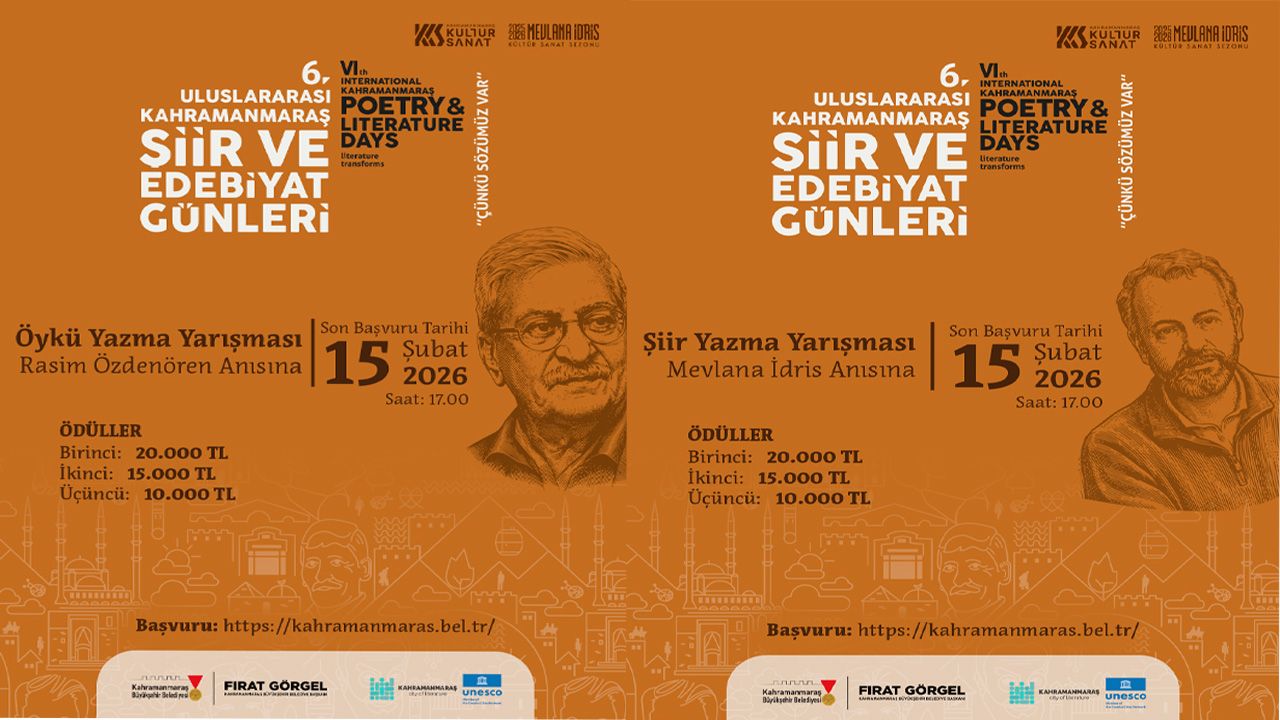Edebiyatın farklı türlerine kapı aralayan yarışmalarda, başvurular 15 Şubat 2026 tarihine kadar kabul edilecek. Yarışmaya katılmak isteyen edebiyatseverler; katılım şartları, yarışma takvimi ve başvuru formuna https://kahramanmaras.bel.tr/duyuru/2026/01/08/6-uluslararasi-kahramanmaras-siir-ve-edebiyat-gunleri-basvuru-formu internet adresinden ulaşılabiliyor. Kahramanmaraş Büyükşehir Belediyesinden yapılan açıklamada, edebiyatın birleştirici gücüne vurgu yapılarak, yarışmanın hem yeni yeteneklerin keşfedilmesine hem de edebiyatın toplumun her kesimine yayılmasına katkı sunacağı ifade edildi. Açıklamada ayrıca, şiir ve öyküye gönül veren tüm edebiyatseverler yarışmaya davet edildi.