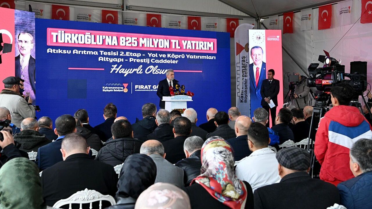 Şehirde başlatılan yeniden inşa ve ihya süreci kapsamında hayata geçirilen dev yatırımlar bir bir hizmete giriyor. Kahramanmaraş Büyükşehir Belediyesi tarafından 825 Milyon TL’lik yatırımla Türkoğlu’na kazandırılan alt ve üstyapı projelerinin toplu açılış töreni yoğun katılımla gerçekleştirildi. Türkoğlu Atıksu Arıtma Tesisi’nde düzenlenen törende; Atıksu Arıtma Tesisi 2. Etap projesi, altyapı ve yol yatırımları, 4 köprü, Şerife Tansel Taziye Evi Yenileme Projesi ile Katı Atık Transfer yatırımlarının toplu açılışı yapıldı. Programa, Büyükşehir Belediye Başkanı Fırat Görgel’in yanı sıra; AK Parti Kahramanmaraş Milletvekili İrfan Karatutlu, Türkoğlu Kaymakamı Mustafa Nevzat Mercan, Türkoğlu Belediye Başkanı Mehmet Karaca, AK Parti Kahramanmaraş İl Başkanı Muhammed Burak Gül, MHP İl Başkanı Mansur Metehan, İstiklal Üniversitesi Rektörü Prof. Dr. İsmail Bakan, KASKİ Genel Müdürü Necati Çalık, AK Parti Türkoğlu İlçe Başkanı Mehmet Ali Şen ve vatandaşlar da katıldı.