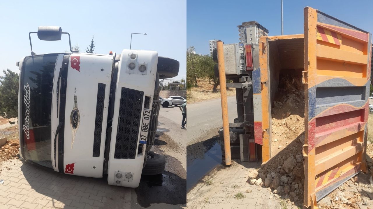 Alınan bilgilere göre, Cumhuriyet Mahallesinde seyir halindeki 27 BBE 072 plakalı kamyonun sürücüsü, henüz bilinmeyen bir nedenle direksiyon hakimiyetini kaybetti. Kontrolden çıkan araç yol kenarına savrularak yan yattı.