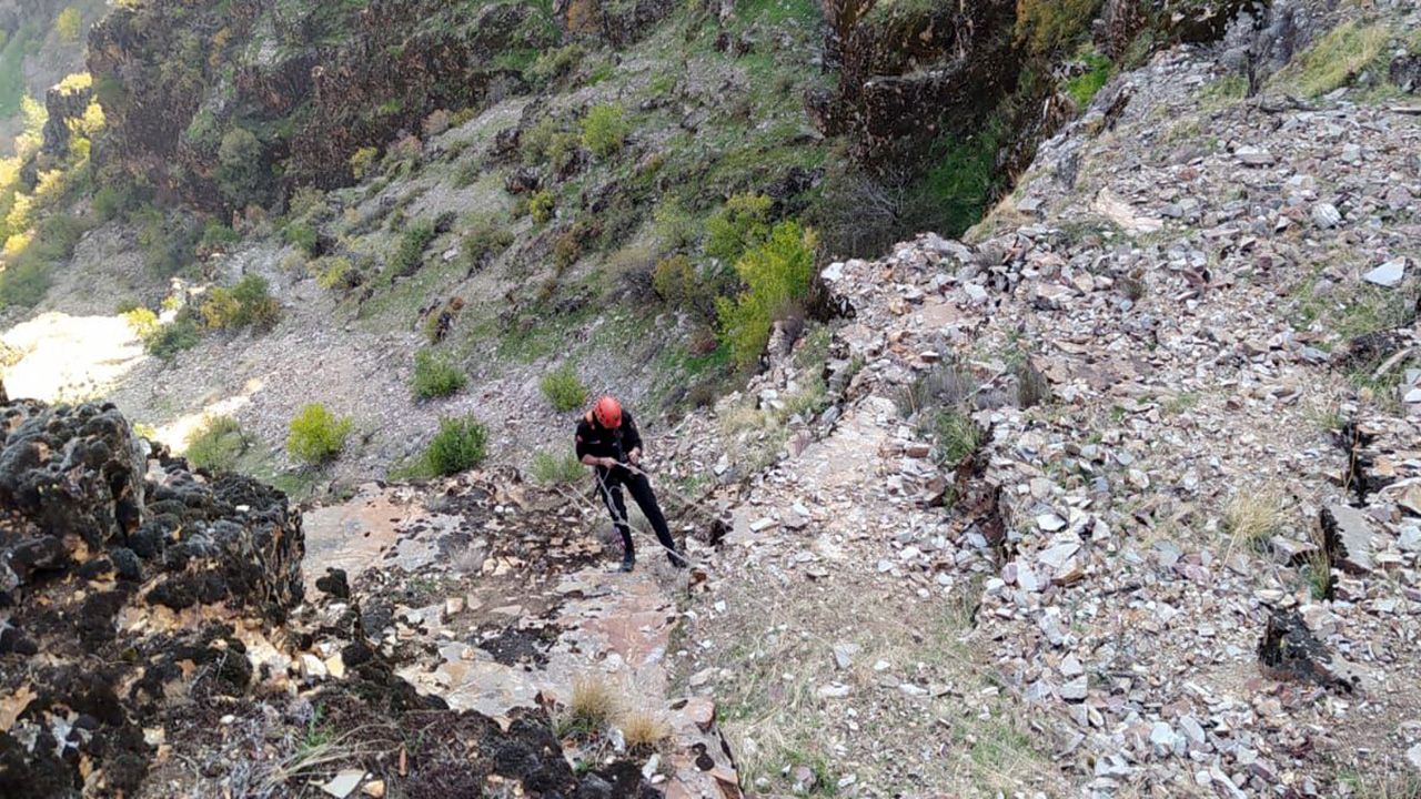 Zorlu arazi şartlarına rağmen titizlikle çalışan itfaiye ekipleri, mahsur kalan 5 keçiyi bulundukları yerden güvenli bir şekilde çıkararak çobana teslim etti.
