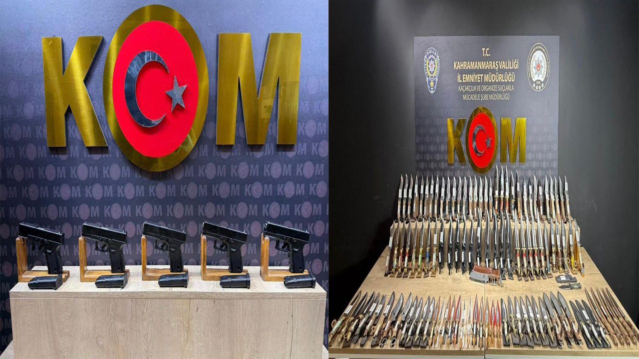 Yapılan aramalarda 16 ruhsatsız tabanca, 19 tabanca şarjörü, 196 tabanca fişeği, 74 av fişeği ve çeşitli çap ve ebatlarda toplam 108 bıçak ele geçirildi.