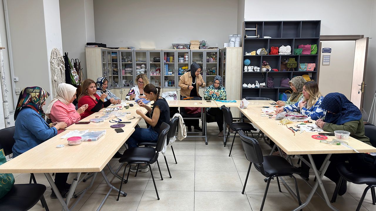 Kahramanmaraş Büyükşehir Belediyesinin Meslek Edindirme Kursları (KAMEK), yeni eğitim döneminde 26 farklı branşta toplam 750 kursiyere ücretsiz eğitim sunmaya devam ediyor. Farklı yaş ve meslek gruplarından vatandaşların yoğun ilgi gösterdiği kurslar arasında takı tasarım atölyesi bu yıl öne çıkan eğitimlerden biri oldu. Usta öğreticiler eşliğinde yürütülen takı tasarım kursunda katılımcılar hem el becerilerini geliştiriyor hem de yeni bir meslek edinme imkânı buluyor. Atölyede teknik eğitimlerin yanı sıra sosyalleşme fırsatı da bulan kursiyerler, üretim süreçlerini keyifli bir atmosferde gerçekleştiriyor.